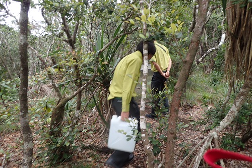 この日は父島林内の奥地に生息している、シマホザキランの巡視を実施しました!
