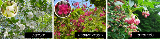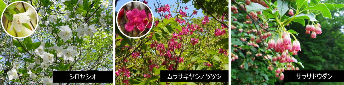森の散策路を歩きながら、シロヤシオやトウゴクミツバツツジ、サラサドウダンなど、様々な種類のつつじを眺めることができます。