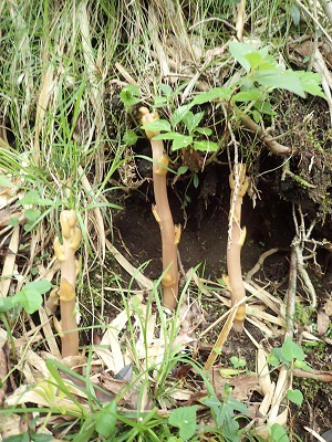 季節の植物としては、「ツチアケビ」を目にすることが出来ました。5月下旬の姿はアスパラガスのようです。夏の姿はまた激変しますので、夏期以降でこのコースを歩くときには楽しみに探してみて下さい。