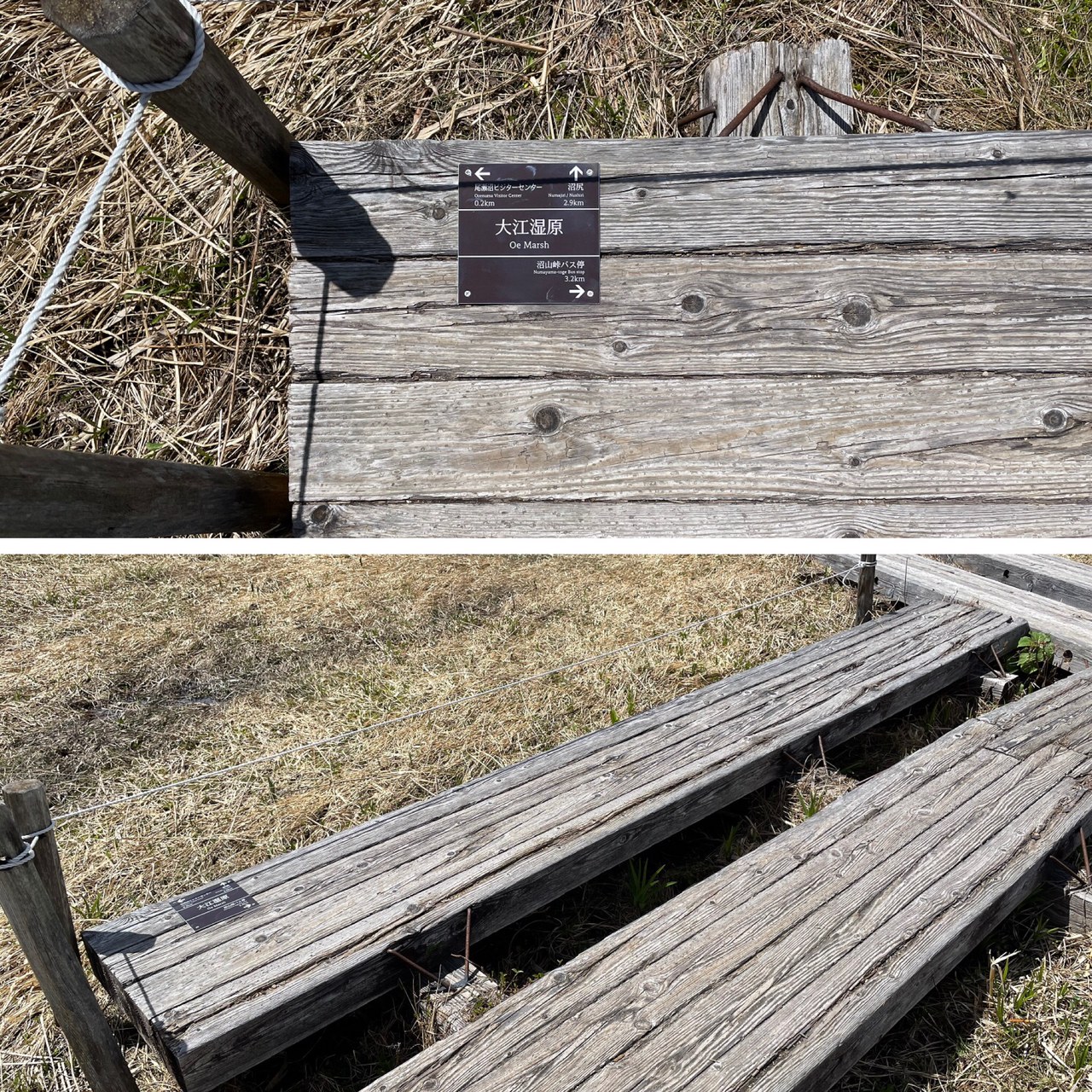 豪雪地帯の尾瀬では、杭タイプの標識は積雪で壊されてしまうので、今回は木道に貼り付けるシンプルなタイプの標識です。