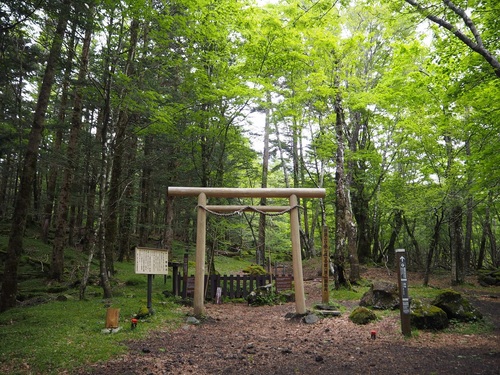 紹介したコースから少し下った場所に須山御胎内があります。この場所は旧須山口登山道一合目の場所で、鳥居の先の風穴に富士山の神様とされている木花咲耶姫の石像があります。以前の大雨の影響で残念ながら現在は風穴に入ることは出来ませんが、不思議な雰囲気のある場所で、周辺は美しい原生林が広がっています。