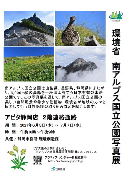 6月3日より、アピタ静岡店にて南アルプス国立公園写真展が開催されています。今回は静岡市役所・環境創造課と共催です!