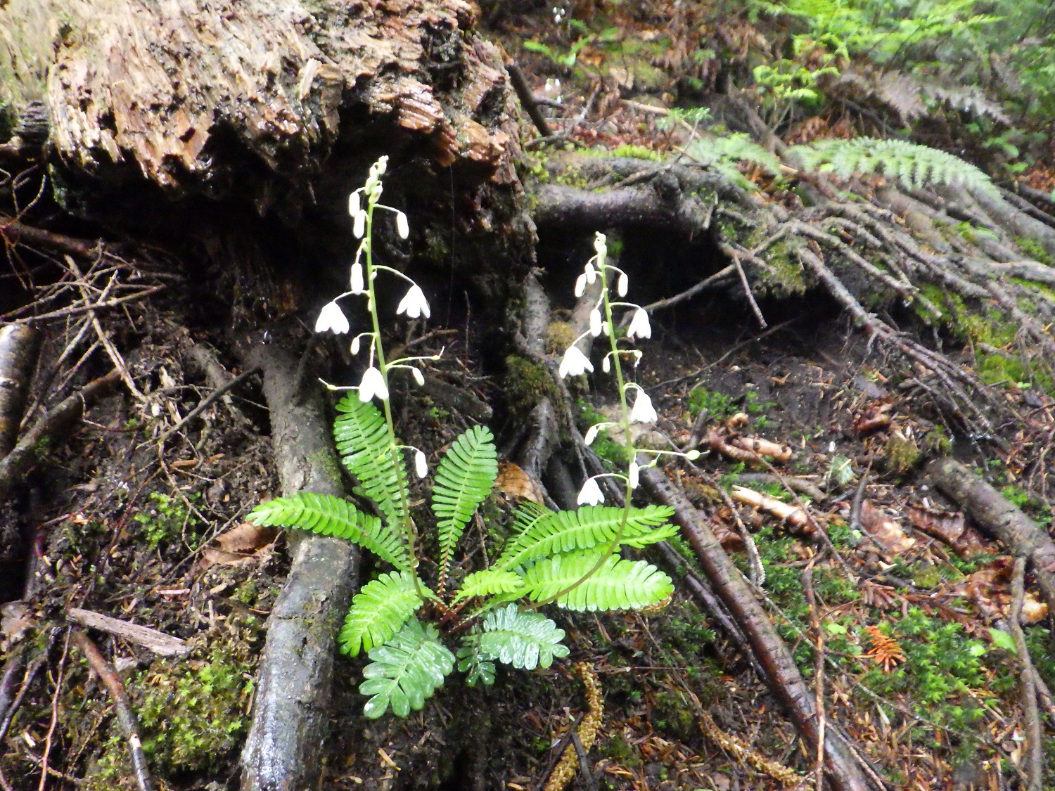 可憐なオサバグサの花 林床に生えるオサバグサ