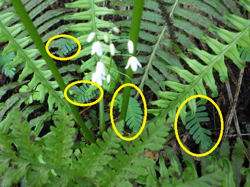この可憐な白い花の群落を見たことがある人はいますか?オサバグサ(ケシ科)は日本の固有種で本州の中部地方以北に分布する1属1種のユニークな植物です。檜枝岐村の帝釈山や台倉高山では登山口付近から生息がみられ、毎年6月には尾瀬檜枝岐温泉観光協会主催の「オサバ草まつり」が開催されます。参加者には記念ピンバッチがプレゼントされ、多い日には数百人が訪れるほどの人気があります。以前より減少傾向にあるという話も聞きますが、この時期登山道を歩けばいくつも見つけることができます。特徴的なのは一緒に生息していることの多いシダ類と葉の形がそっくりなことです。