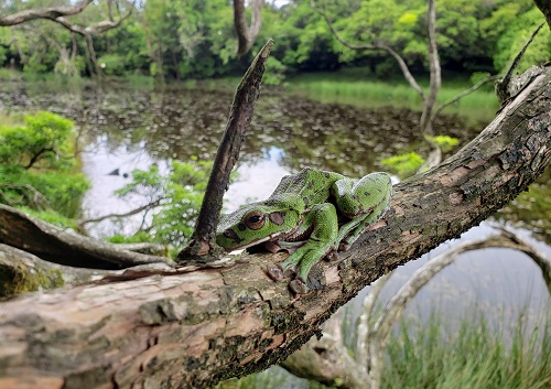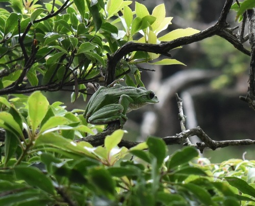夜行性のモリアオガエルですが、昨年同様に日中も池の分岐に近づくと大合唱が聞こえてきました。今年も元気に活動しています。ふと、夜はもっと凄い大合唱のかな?と思ったのですが、夜中に何も知らずこの大合唱が聞こえたらちょっと怖いかもしれませんね。