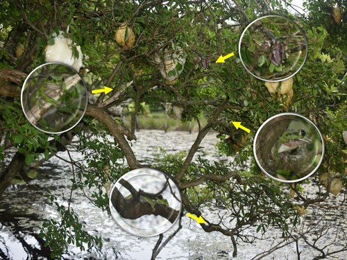 ヒント:カエルの目を探して下さい。目が慣れてくると見えてきます。何匹かいますよ。