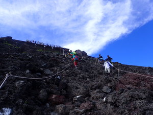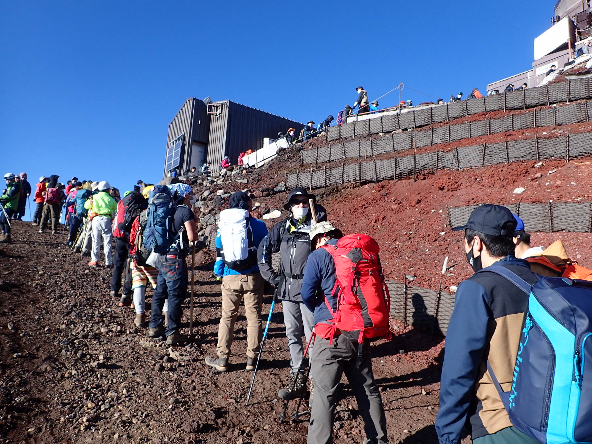 富士宮口から上がる登山者は、連休初日ということもあってか7月10日の開山以降一番の混雑ということでした。