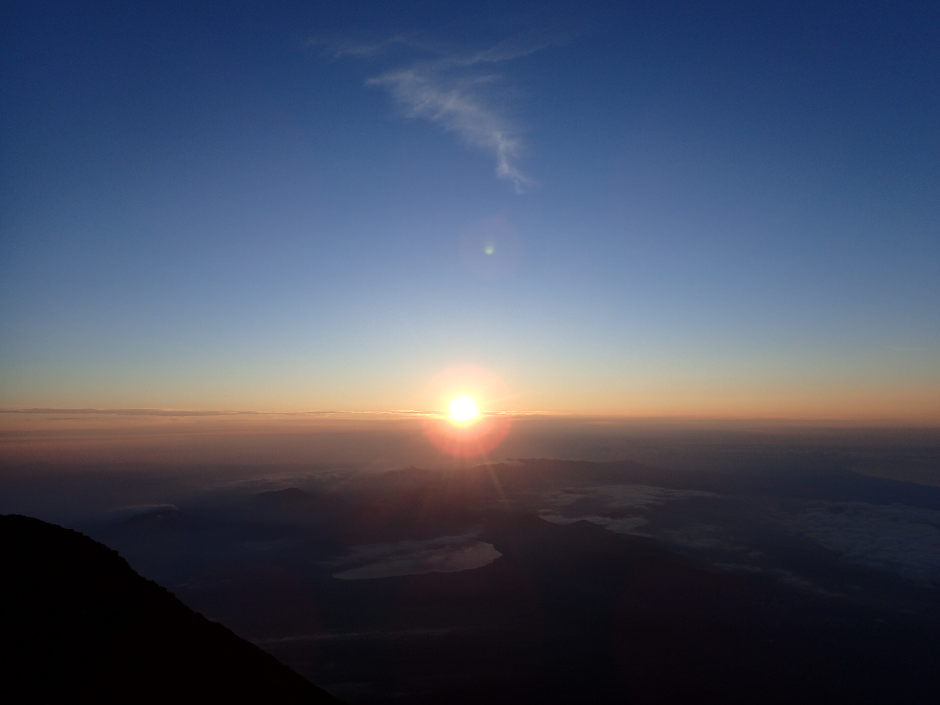 4時半過ぎに太陽が昇ってきました。登山者の方々は写真を撮ったり静かにご来光を眺めていました。 こういった美しい景色がみられるのも登山の楽しみの一つですよね。