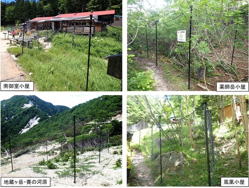 防鹿柵は南御室小屋、薬師岳小屋、地蔵ヶ岳直下・賽の河原、鳳凰小屋の4か所に設置されています。¨これまで守ってきた高山植物を引き続き守ろう¨、¨柵を設置して、昔の植生を取り戻そう¨など、それぞれの設置場所で目的や意図は異なりますが、今回の設置が良い傾向に向かうといいな、と思います。