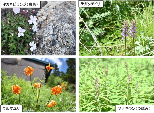 巡視に行った7月中旬はクルマユリ、ヤナギラン(つぼみ)、キソチドリ、テガタチドリ、そして、南アルプス山域固有種のタカネビランジが咲いていました。中でも、オレンジ色が鮮やかなクルマユリがとても印象に残りました。ちょうど今はヤナギランや鳳凰三山の固有種・ホウオウシャジンが咲いているのではないでしょうか♪