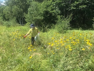 いやいやこれは、特定外来生物(植物)のオオハンゴンソウの抜き取りです。