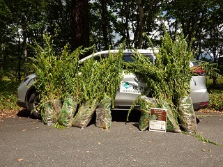 例年ですと、奥日光地区で400kgくらいの外来植物除去を行っています。