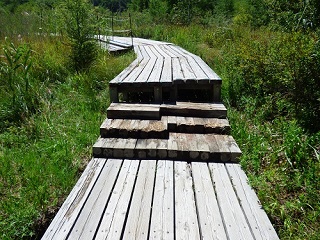 一部、敷板部分を下げている木道(戦場ヶ原)。通行にはご注意を!