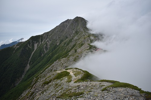 見えるはずの北岳山荘はガスに埋もれて全く見えません。