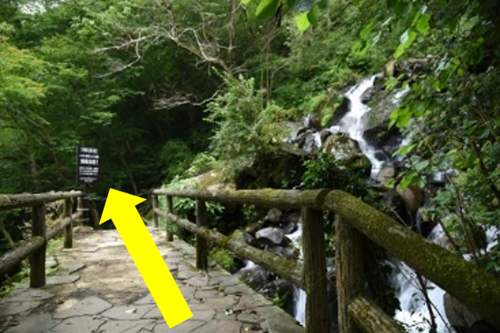 この橋の向こうに進むと、飛龍の滝足元まで近づけます。