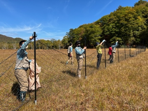 秋色の尾瀬で植生保護柵を撤去