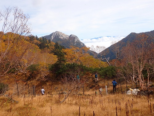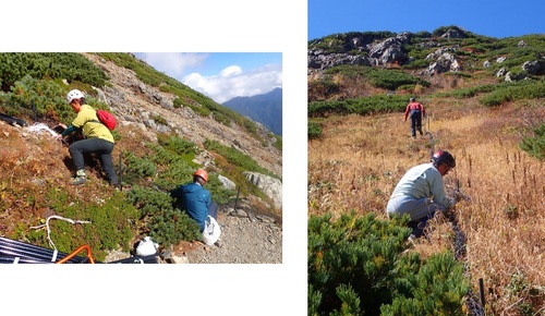 9月下旬から10月上旬にかけて、環境省事業で行っている仙丈ヶ岳、荒川岳に設置されている防鹿柵の撤去に行ってきました。環境省では、北岳、仙丈ヶ岳、荒川岳に季節型の柵(*)を設置しています。