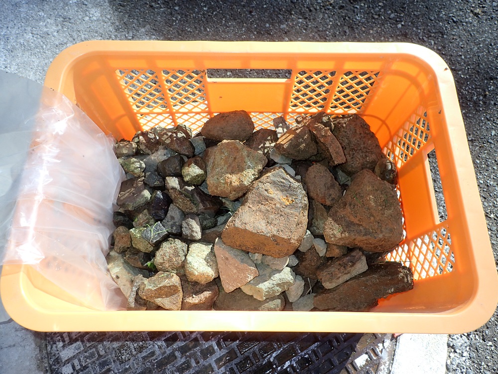事務所の敷地内などで大小さまざまな大きさの石を拾い集めます。