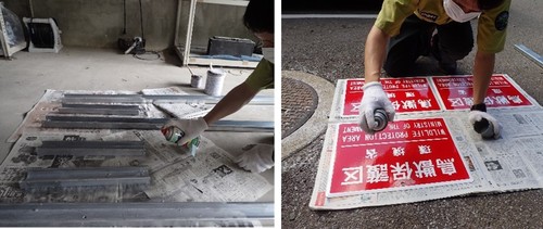 今回は、新しい制札を少しでも長持ちさせるために、錆びやすい箇所に錆止め剤を塗るという一手間もかけました。