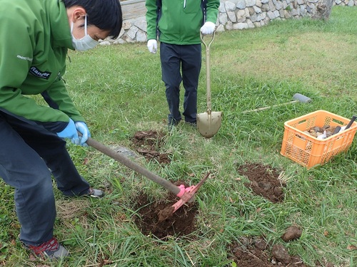 スコップなどを使い、制札がもともと設置されていた場所を掘り返します。