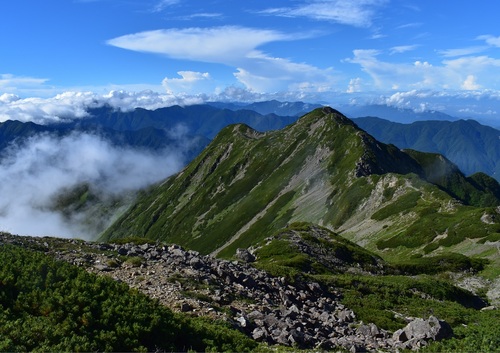 キャプション:仙丈ヶ岳の南にある、大仙丈ヶ岳。静かな時間を過ごせる穴場スポットです