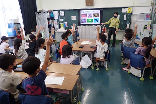 この時期、小笠原小学校の1年生に向けて普及啓発の一環としてマイマイに関する授業を行っています。
