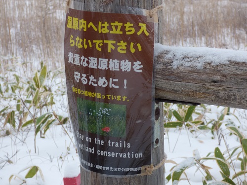 天候急変など予期せぬリスクがありますので十分な情報と装備が必要です。また、雪の下には、春を待つ貴重な植物が眠っています。・・湿原への入り込み、植物の踏みつけはご注意を!