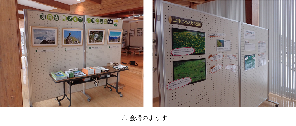 4月から始まった「環境省 南アルプス国立公園写真展」も7会場目になり、今年度の開催は本会場が最後になりました。今回は氷河地形やライチョウのほかに、積雪期の白い南アルプスの写真も展示しています。また、南アルプス国立公園でくらす生きものや地質・文化の紹介、ニホンジカ問題についても取り上げています。