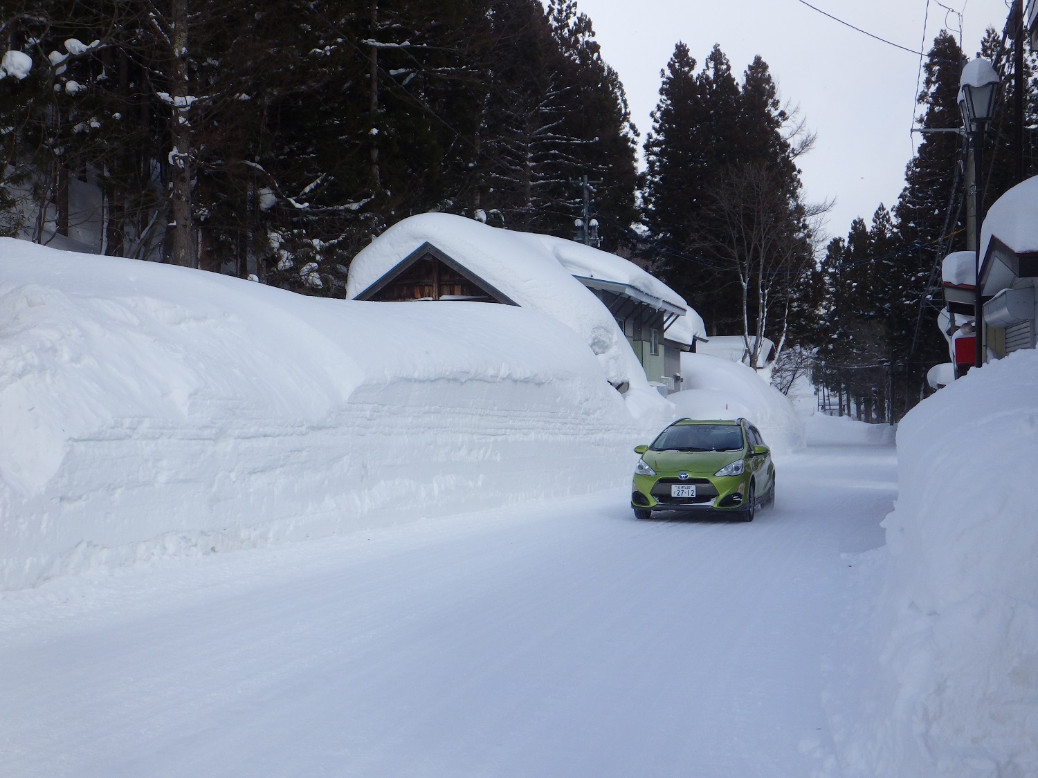 昨年の暮れから檜枝岐では大量の降雪があり、朝暗いうちから除雪車が国道を行き来し、家の前や事務所での除雪作業はここに住む人の日課となっています。