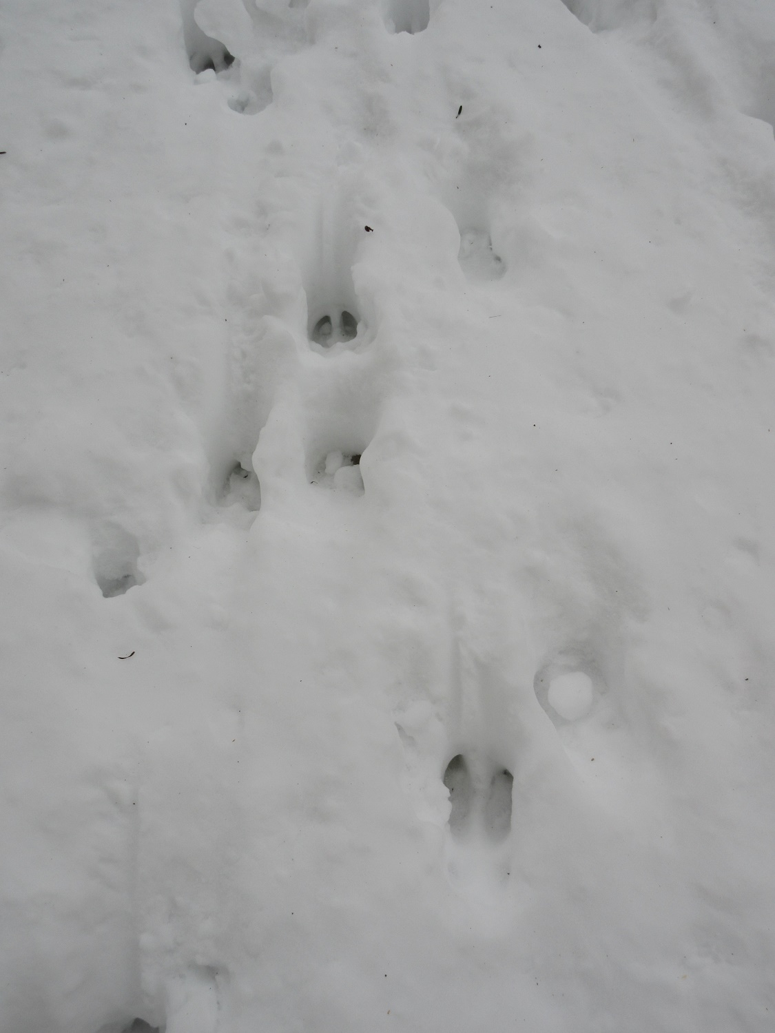 雪が深いので蹄(ひずめ)の後ろの蹴爪(けづめ)の跡がついています。