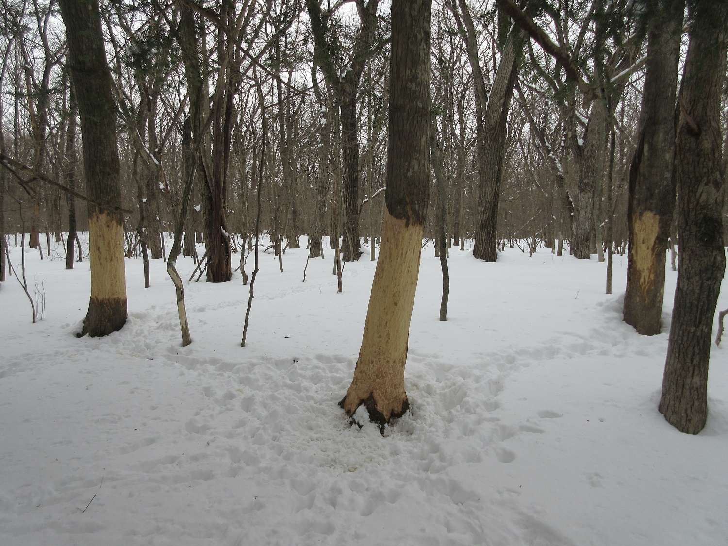 いよいよ食物の尽きたシカは、木の樹皮を剥いで食べます。