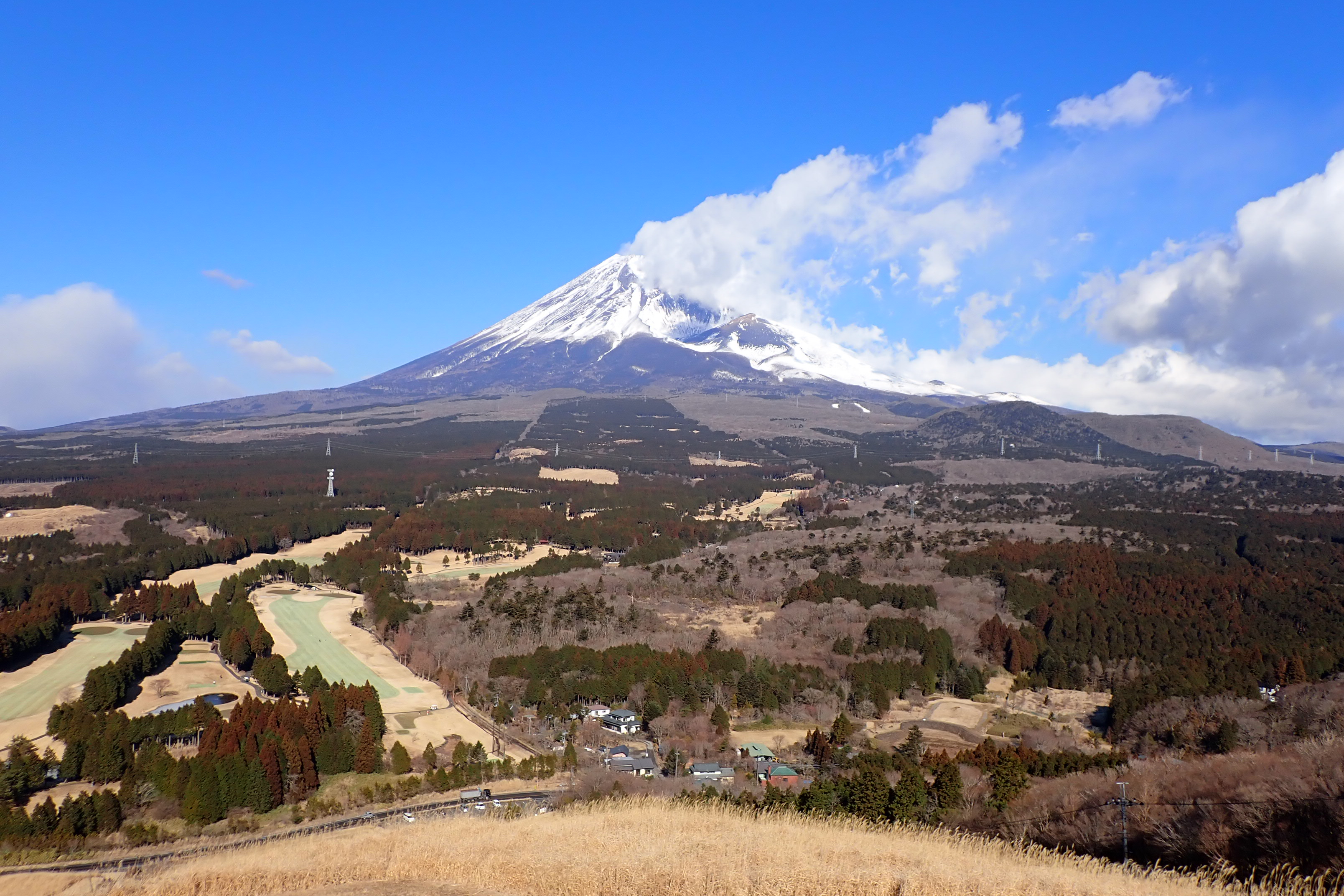 越前岳は富士山の南側に位置する愛鷹山塊の北部にある山で、なんと富士山頂までの直線距離はわずか15㎞!どおりで越前岳山頂に向かう途中の展望台(十里木駐車場から15分くらい上がったところ)からは大きな富士山が見られるのだと納得です。