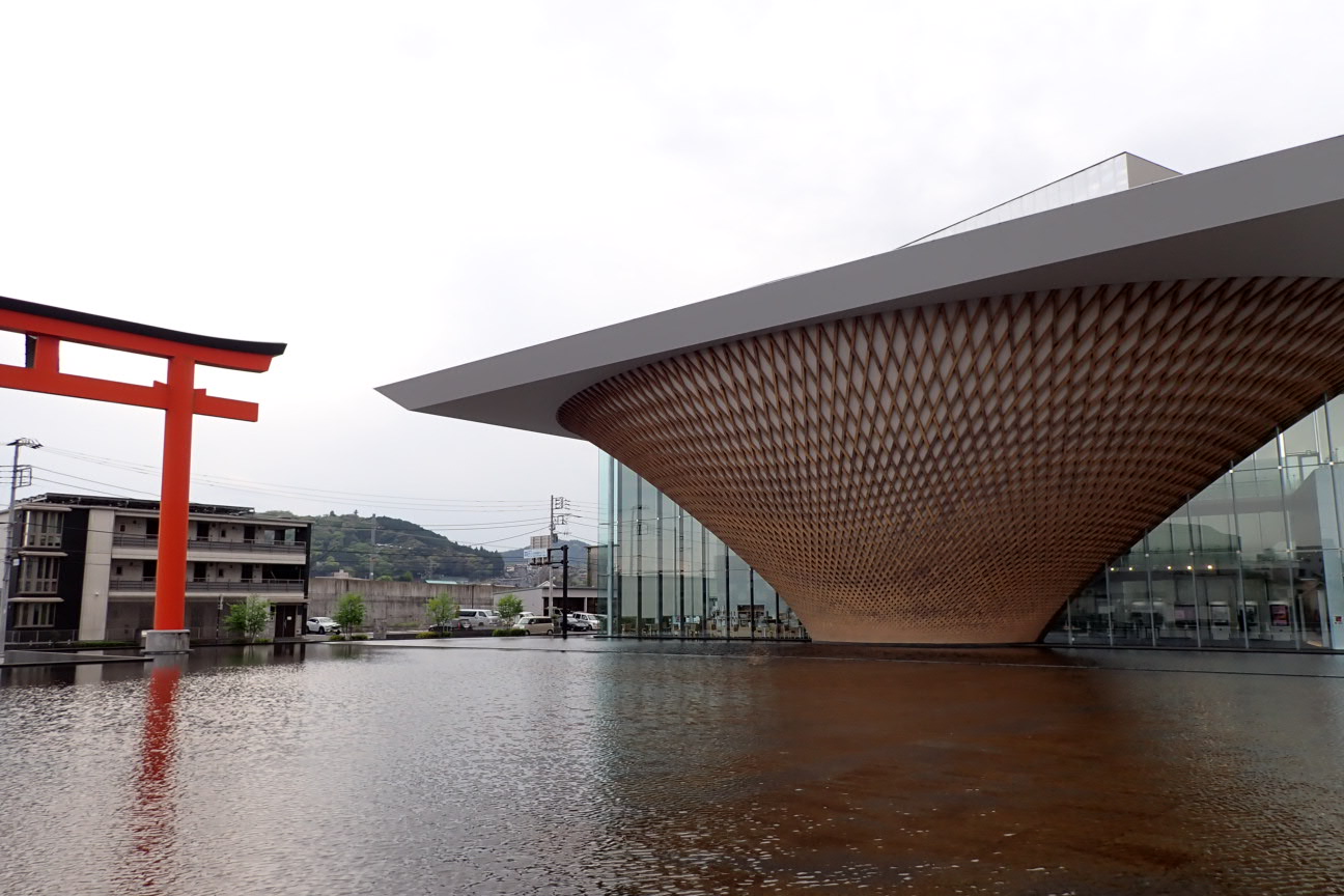 一風変わった外観ですが、手前の池にうつると富士山のようにみえるのです!