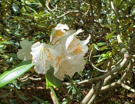 天城山には様々なルートがありますが、その中に「シャクナゲコース」というルートがあり、5月頃から登山道を彩っているのが、伊豆半島の固有種であるアマギシャクナゲです。大変人気の花で、開花シーズンはアマギシャクナゲを目当てにたくさんの登山者が訪れます。週末は駐車場が満車になる程です。例年の見頃は5月中旬頃から6月上旬と言われていますが、今年は5月下旬にほとんどのシャクナゲが花を落としていました。ゴールデンウイークには既に開花していたとの情報もあり、かなり早い開花だったようです。アマギシャクナゲと同時期にアマギツツジや、トウゴクミツバツツジなどが咲くこの季節の歩道の風景は、何度見ても美しく、足を止めて見入ってしまいます。登山道から存在感のあるシャクナゲの花が見えた時の感動を味わってほしいです。シロバナも数本ですが開花を確認しました。