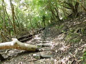 こちらのコースは登り始めから山頂までのほとんどが階段になっていますので、特別な登山経験は全く必要なく、幅広い方々にお楽しみいただける山なのかな、という印象を受けましたが、最初から最後までずっと登り+少し急な場所もあるので、息切れは必至です(笑)