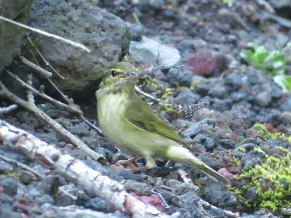 ジュリジュリジュリとスズムシのような美声で登山者の心を和ませてくれる彼らですが、今は様子が違うみたい。一生懸命、小枝を集めては口に咥えて飛んでいき、また暫くすると戻って来てまた小枝集め。そう、彼らは今、巣作りの真っ最中。だから、そんな彼らを見つけても巣を探したりはせず、そっとしてあげて下さいね。