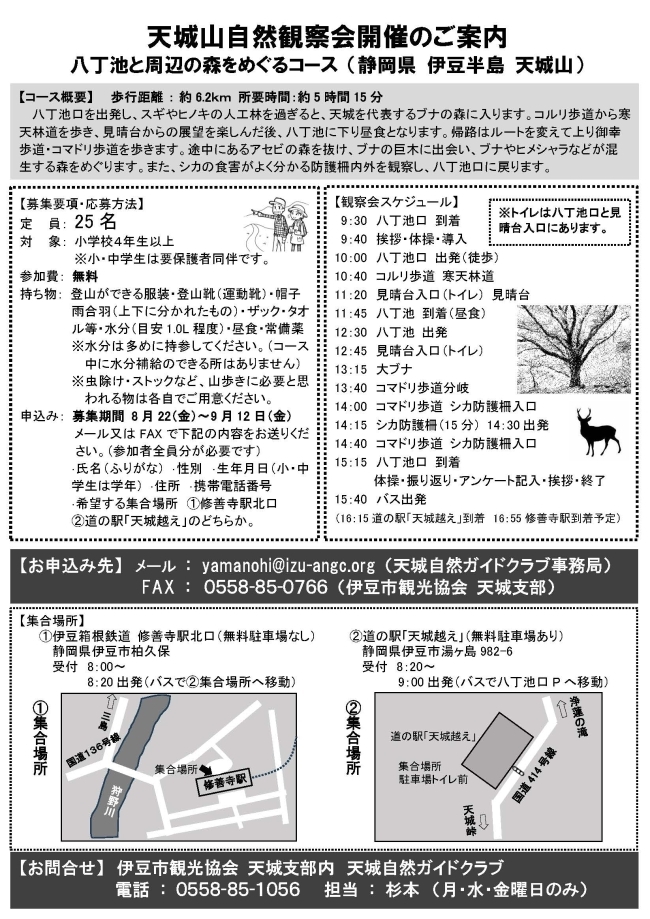 申込方法:メール(yamanohi@izu-angc.org)またはFAX(0558-85-0766)で下記の内容をお送りください。