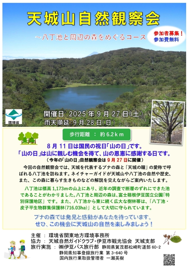 【募集終了】令和7年度「天城山自然観察会(八丁池)」のご案内✨