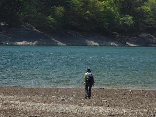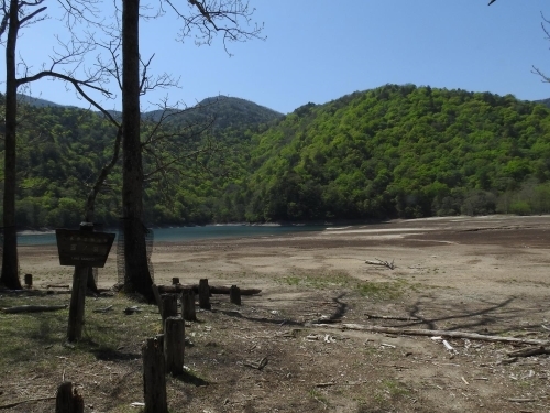 西ノ湖は流入している河川がなく、雪解け水と雨水だけが水源の湖です。今年は雪が少なかった影響で、前年度よりも水量が少ないとのこと。湖のほとりには一部で「ナラの木大王」と呼ばれる大きなナラの木が立っています。森向こうからは低くツツドリの声が響き、なんとも幻想的な場所でした。