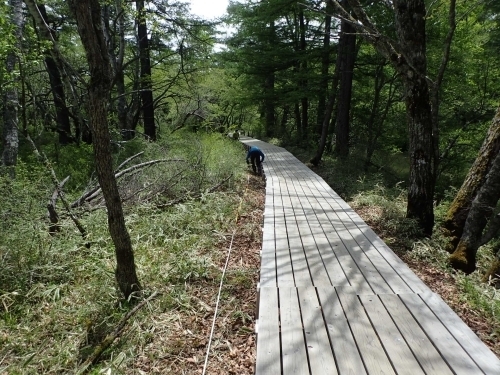 作業が早く終わったので、NPVの方が宇都宮大のみなさんに戦場ヶ原をちょっとだけご案内していました。この日は男体山を始めとした山々がくっきり見え、新緑もまぶしく、まさに戦場ヶ原日和!ワタスゲが目立ちはじめ、ズミの花も見頃で、この季節の奥日光の自然を楽しんでもらえたのではないかと思います。