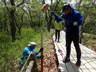 日光パークボランティアの活動紹介です。ボランティアによる戦場ヶ原の木柵の杭補修
