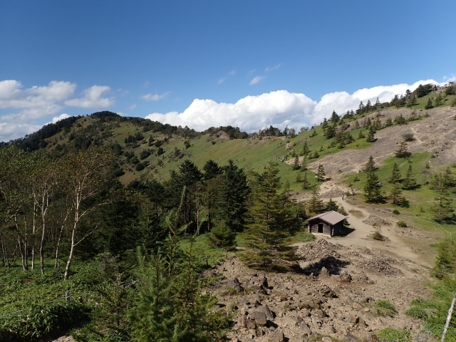 風の通り道であり、冬季には雪や強風で犠牲者も出たと言いますが、現在の賽ノ河原には避難小屋があり、登山中の休憩に適した場所となっています。