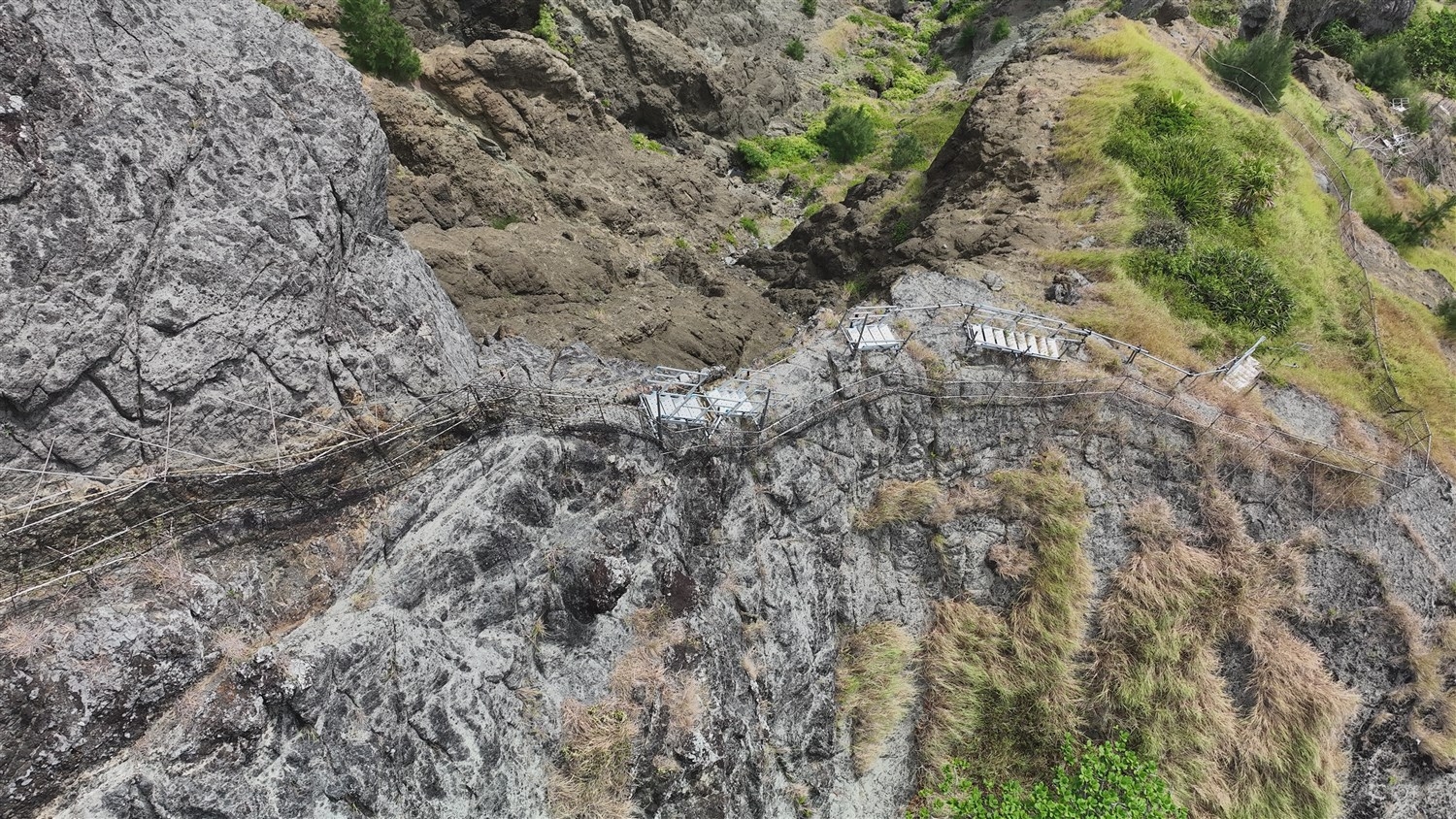 今回ドローンを使用したのは、東平自然再生区のノヤギ柵の南側の区間です。このエリアは草原や岩場が広がっており、急な岩の切通しを安全帯を着用して通行する必要があるなど、点検作業が特に困難な場所です。ドローンを活用することで、安全性と作業効率の向上が期待されます。