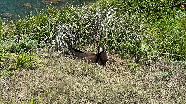 カヤックで上陸し、最初の崖を登る途中、カツオドリが抱卵していました。