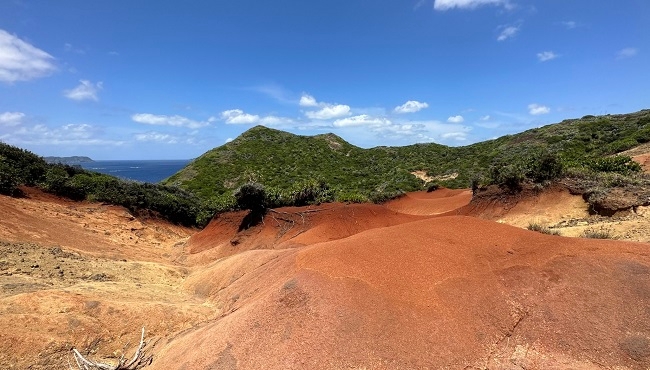 起伏に富んだ地形を進むと赤土の丘陵地帯が所々あらわれます。