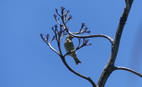 道中の沢を進むとオガサワラカワラヒワが姿を見せてくれました。