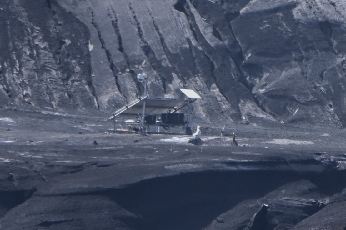 北部には、今年7月の西之島総合学術調査の際に設置された、衛星通信装置や無人探査機を使用して継続的なモニタリングをするための拠点も見ることができました。