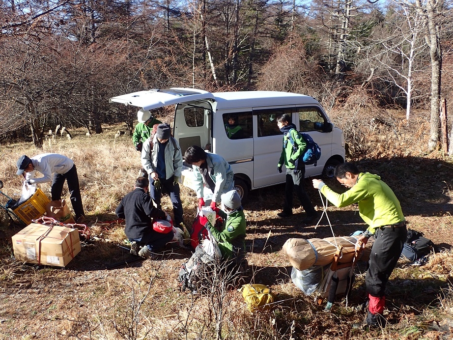 乾徳山がある山梨県山梨市さんには、毎回の作業時にご協力をいただき、資材の運搬、支柱・網の固定作業を始め多くの労力提供など、絶大な支援を受けまして順調な完了となりました。