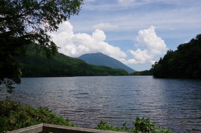 奥日光の一番奥にある湖「湯ノ湖」です。写真は夏の湯ノ湖で、奥に見える山は男体山です。