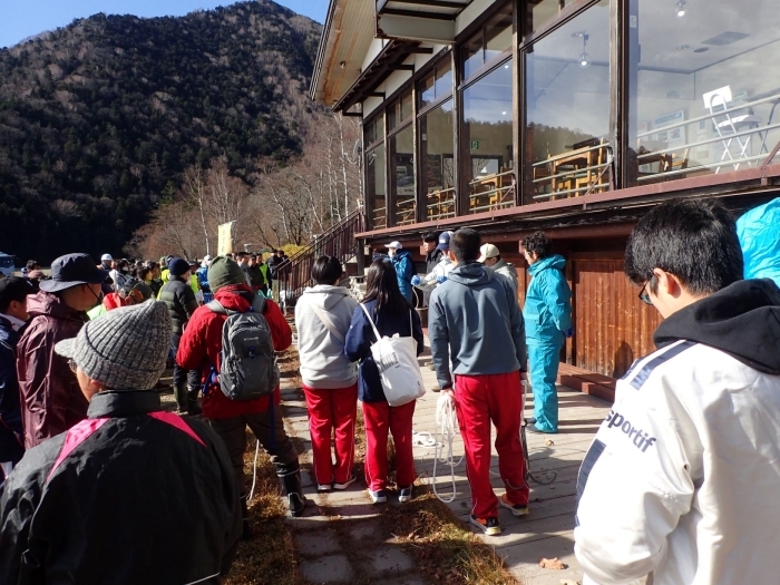 受付、開会式の後、具体的な作業方法について説明がされました。写真右側に見えるのは日光湯元レストハウスの窓です。写真左側には湯ノ湖が広がっています。
